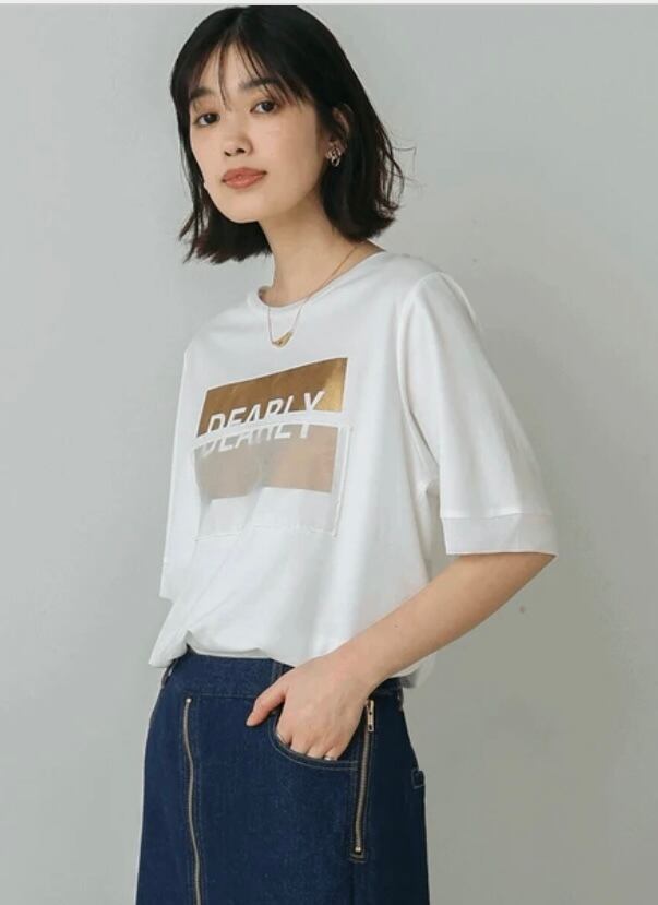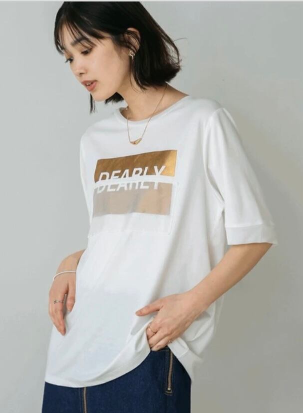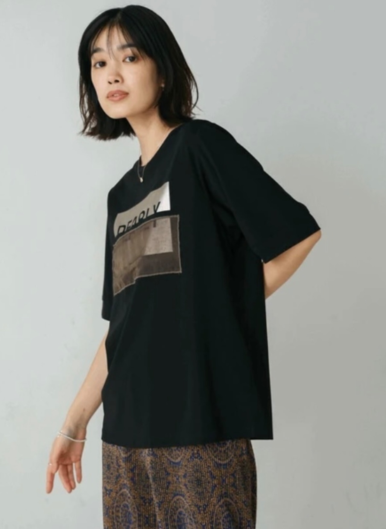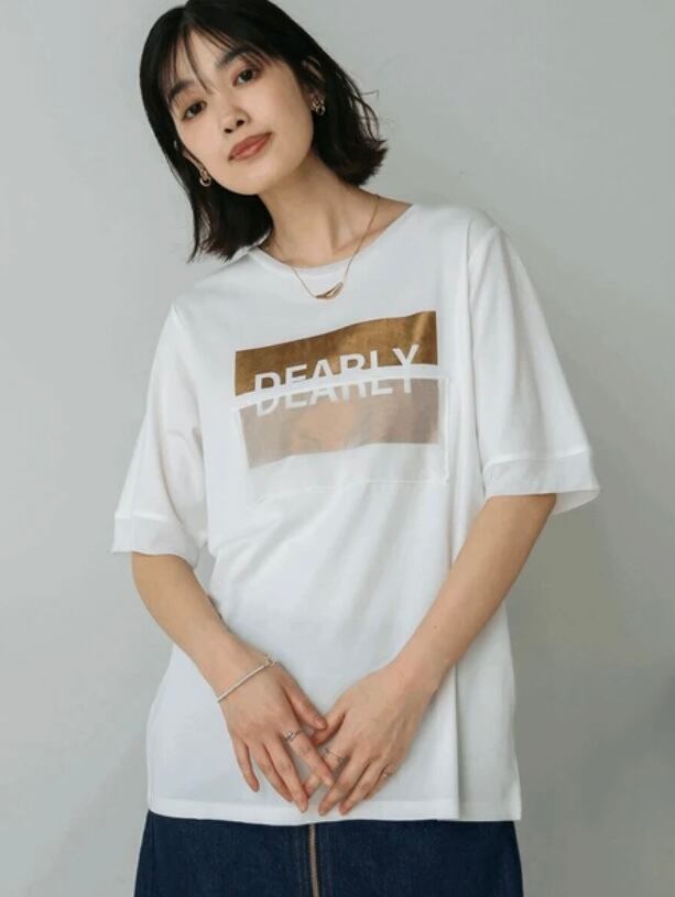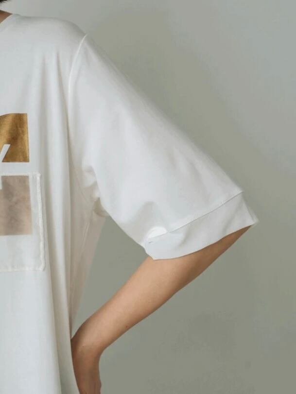 インパクトのある箔プリントロゴにオーガンジーを重ねた、トレンドのシアー感のあるディティールがポイントのTシャツ。