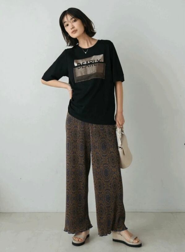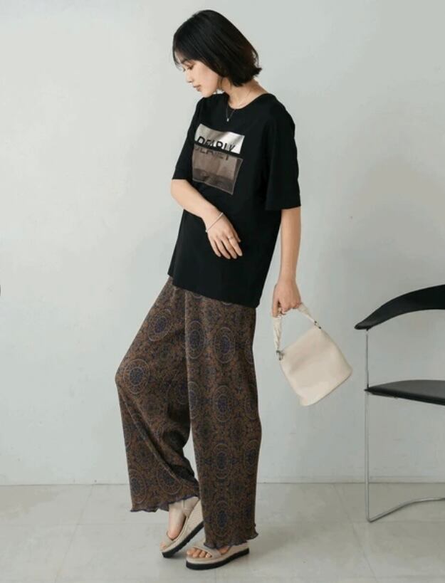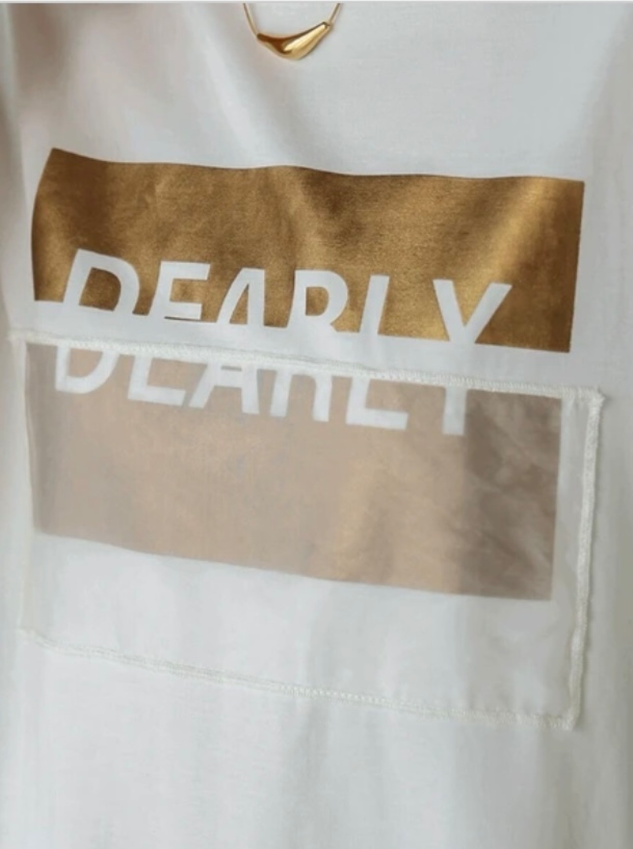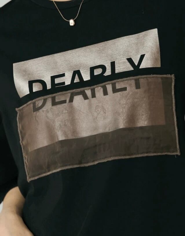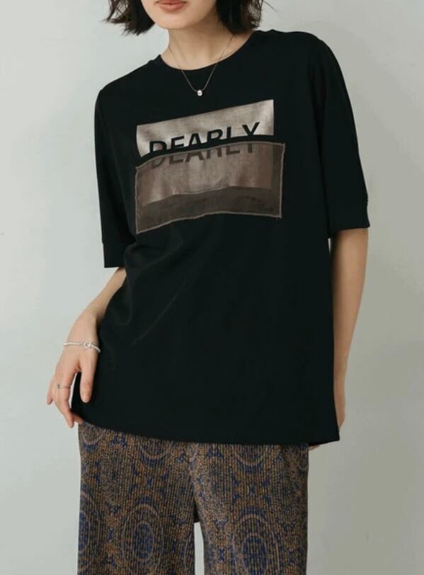 インパクトのある箔プリントロゴにオーガンジーを重ねた、トレンドのシアー感のあるディティールがポイントのTシャツ。