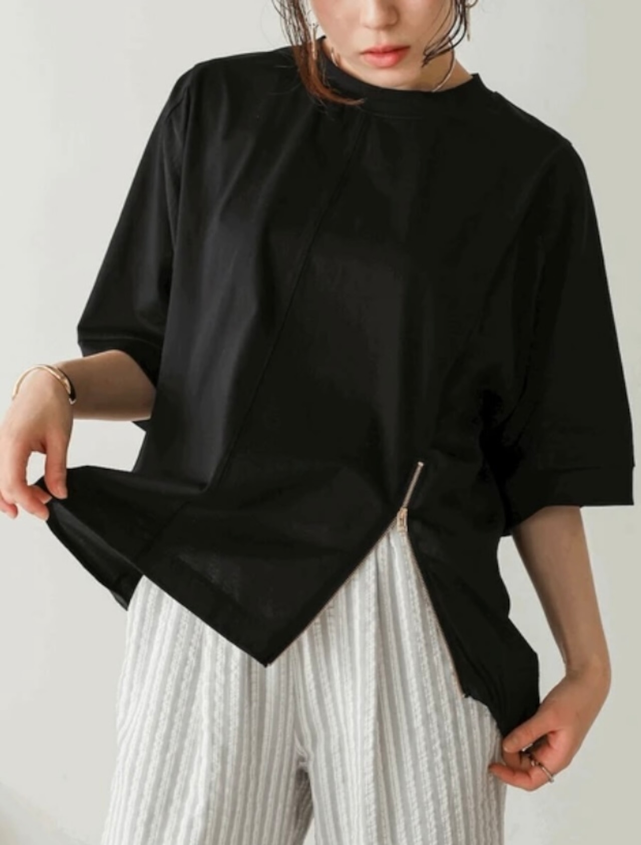 毎年人気のWシルケットシリーズからNEWアイテムのアシンメトリーなZip使いがポイントのプルオーバーです。