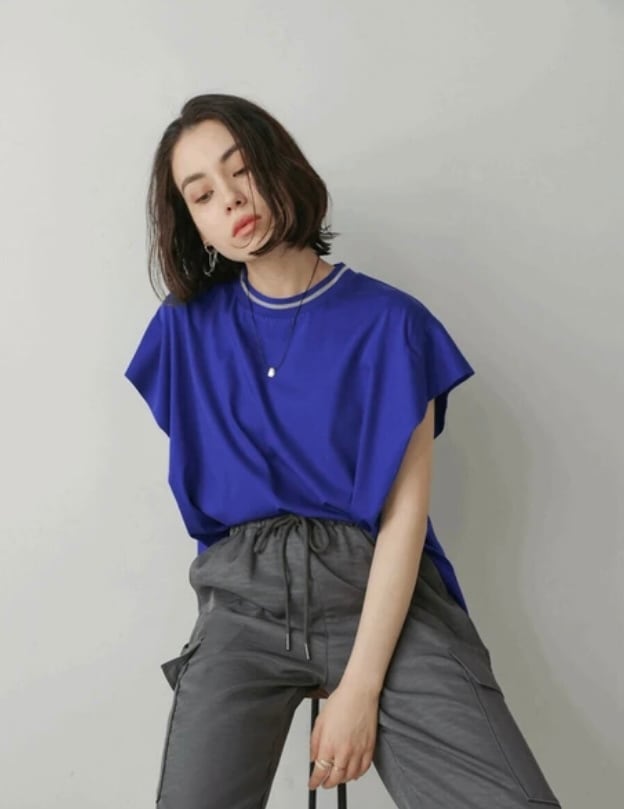 衿配色がポイントのオシャレカットソー。