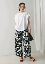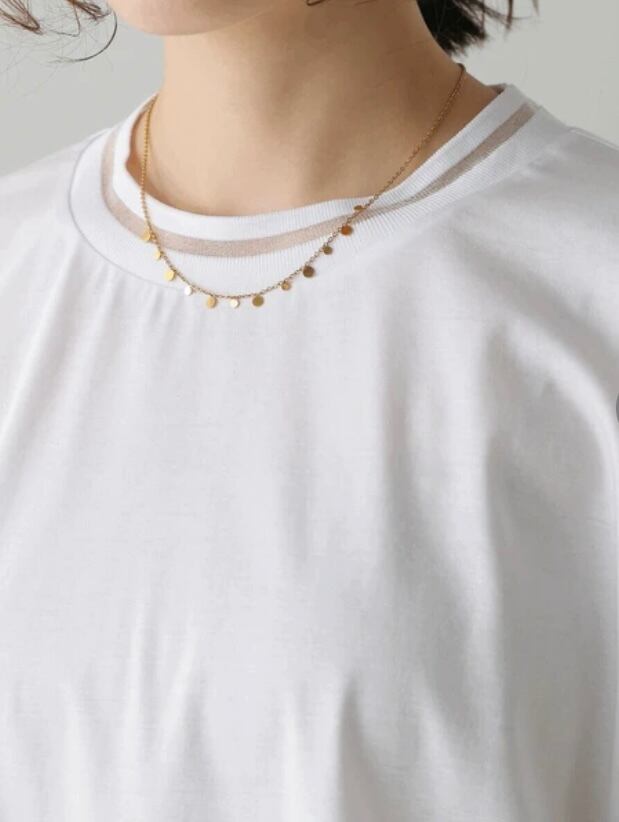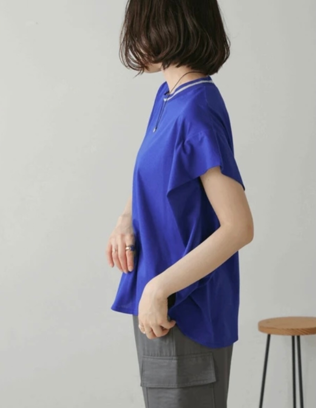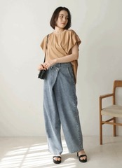 シルケット見えのカットソーはレーヨン混で落ち感があり、ブラウスのような印象です。
