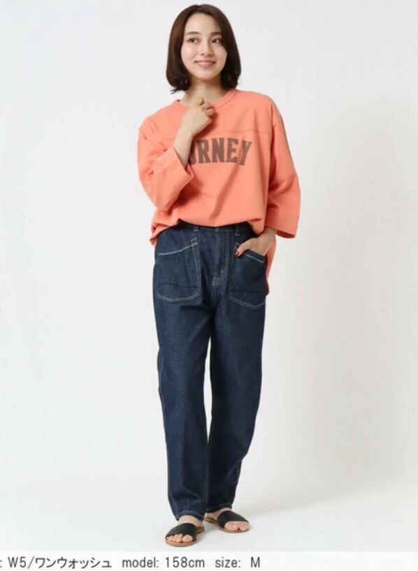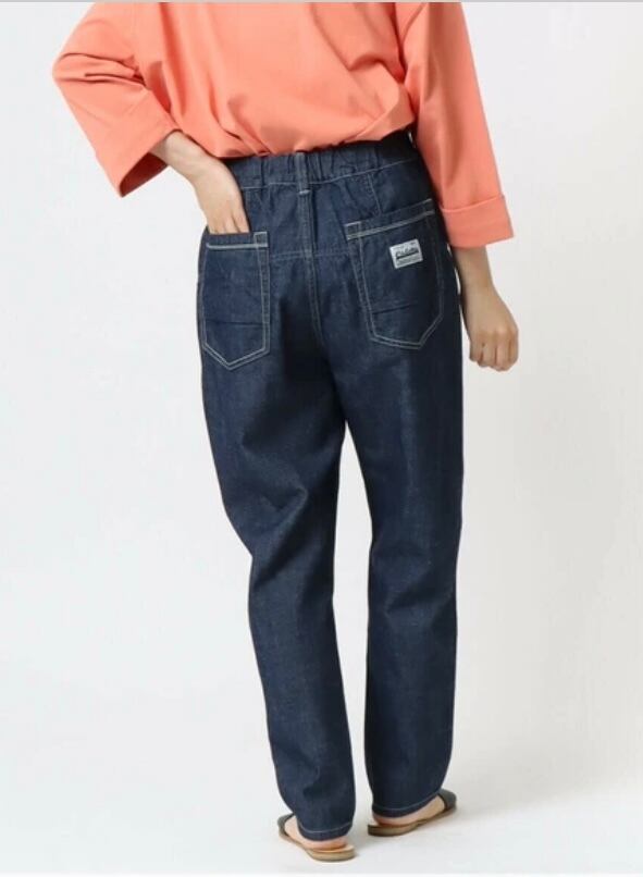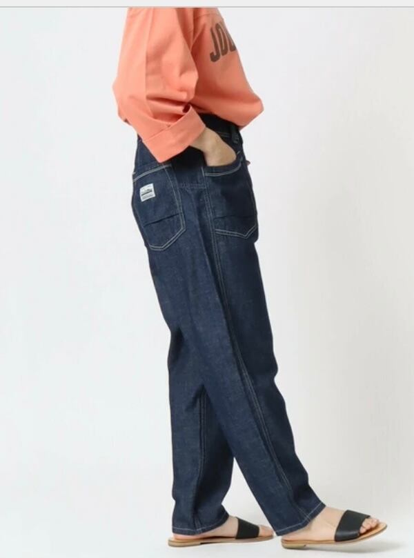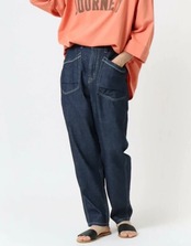 リネンのドライタッチと自然なネップ、コットンの優しい肌触りも加わり柔らかくくったりとした風合いと清涼感を兼ね備えたサマーデニム。程よくヒップにゆとりがあり、人を選ばずどなたでもはきやすい人気のテーパードシルエット。直線的なポケットラインに対して、ステッチはカーブさせアクセントをつけました。前のパッチポケットはももまわりをカバー、後ろのポケットはヒップをカバーしてくれる位置につけているので、後ろ姿も気にせずはけます。バックポケットにあしらわれたおなじみのワンポイントロゴネームがさりげないアクセントになってます。