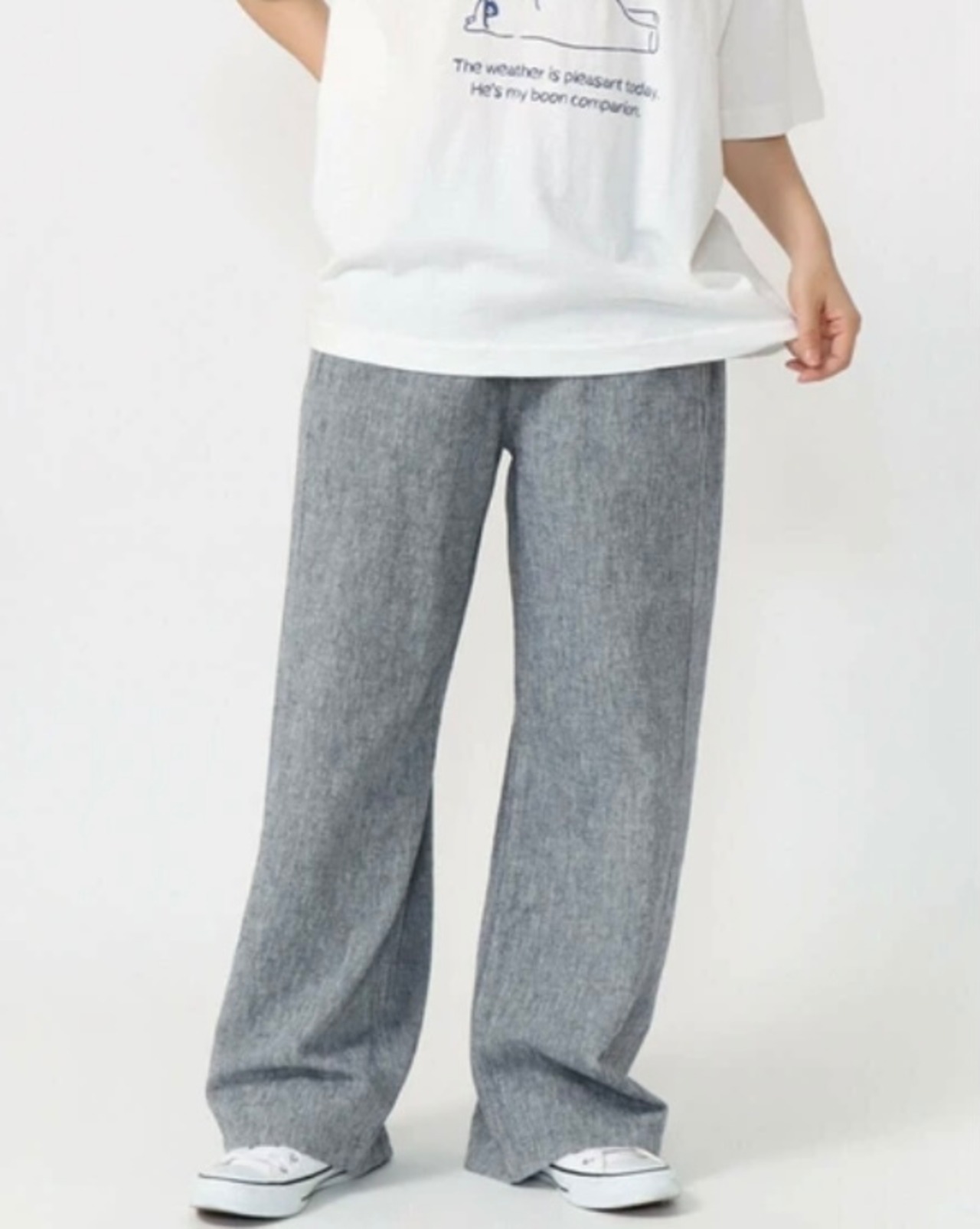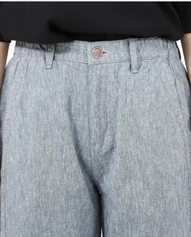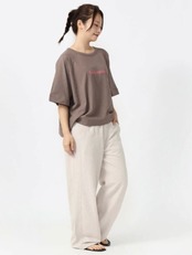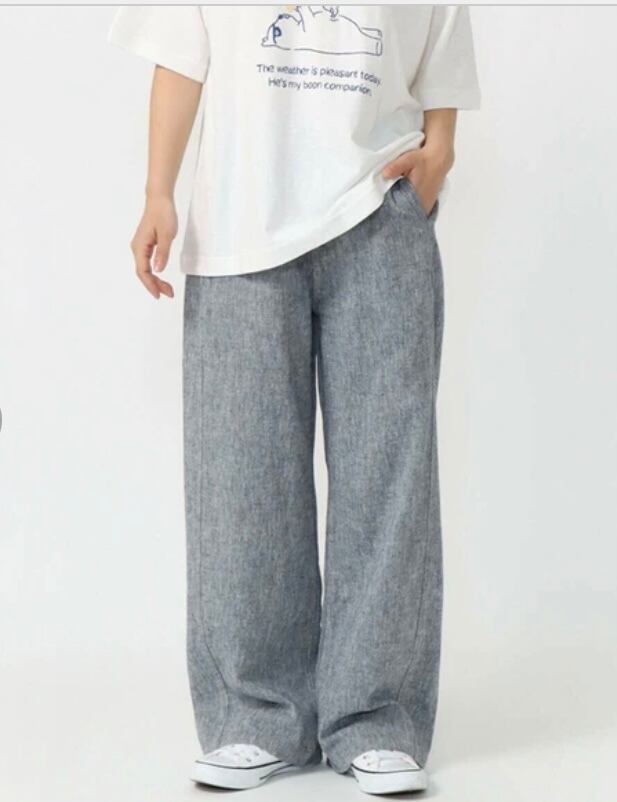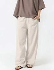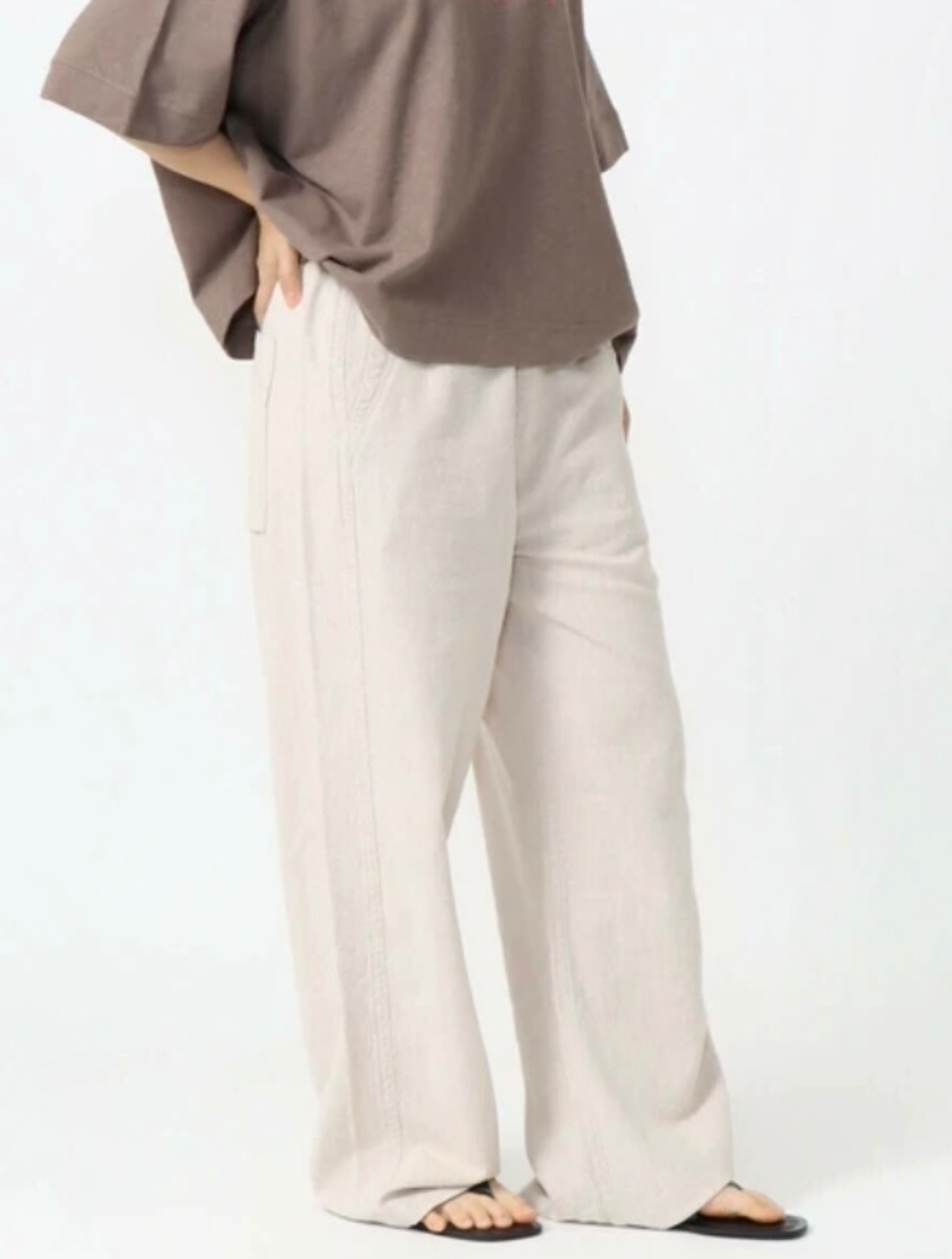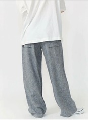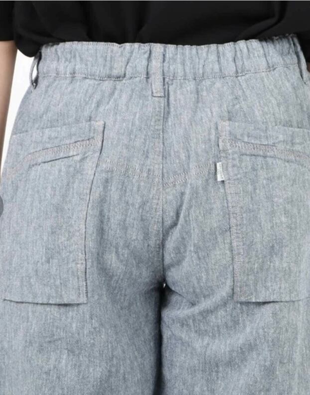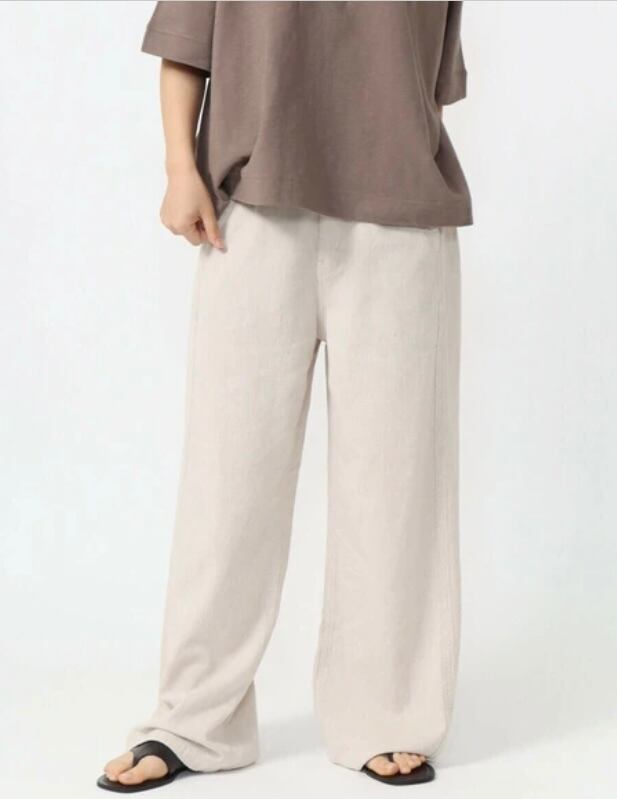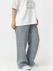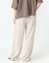 毎シーズン人気のリネン素材をブラッシュアップさせたNEW素材。今期はリネンレーヨンに綿を加え、綿の持つナチュラルな表情と吸水性、通気性の良さを生かした素材感になっています。筒全体にゆとりがあり、ストンと裾に向かっておちるリラックス感のあるワイドシルエット。直線的なディテールを使ったワークデザインに部分的に切り替えを使い、パッカリングを起こさせたデザインで立体感を出しています。