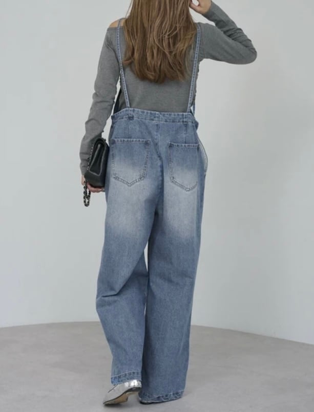 ほどよい色落ち加工がこなれ感を演出する、デニム素材のサロペット。