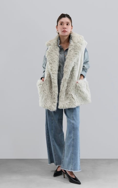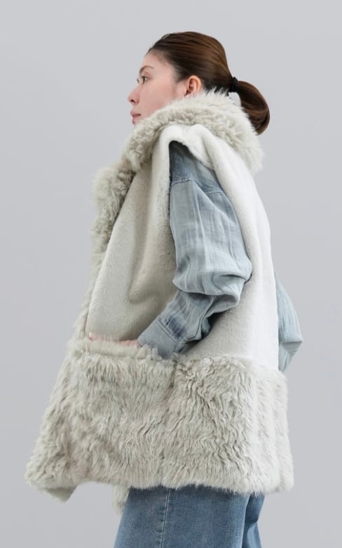 長い毛足と短い毛足のファーを部分的に切り替えた新型のファーベストです。