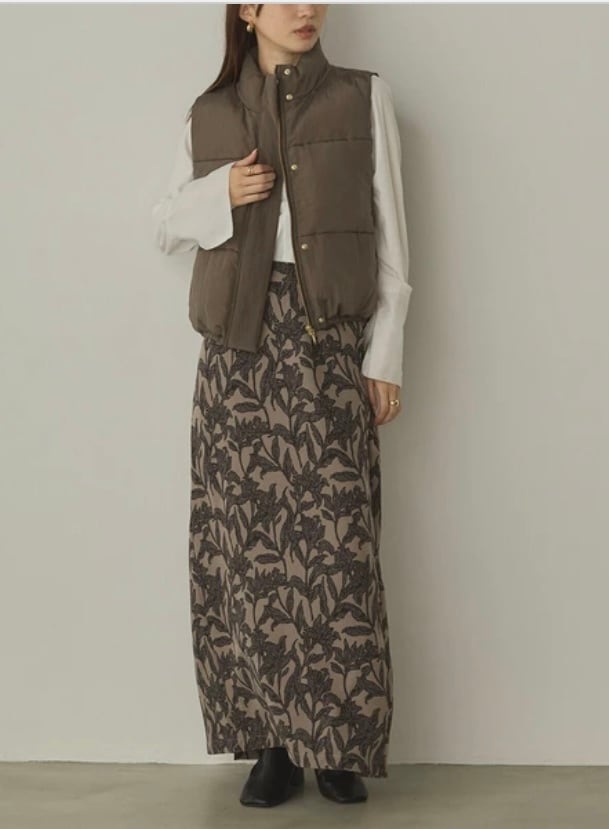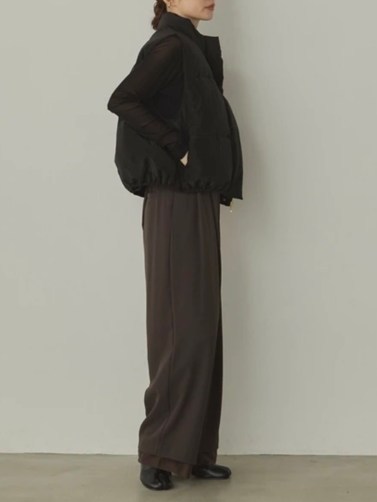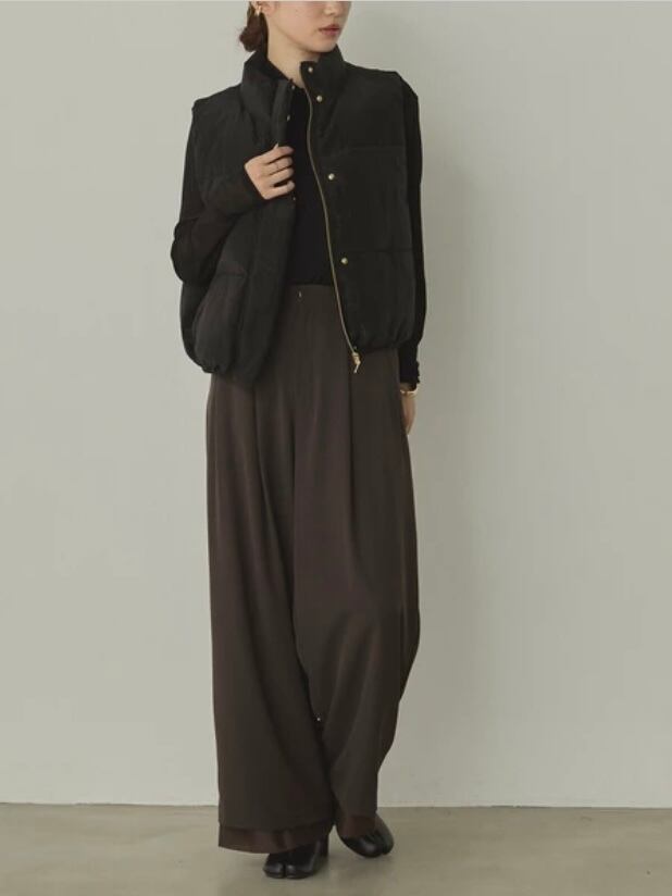 ネックも高すぎず、アームホール広めなので、どんなインナーにも合わせやすく重宝するアイテムです。
