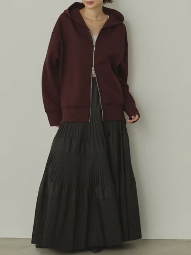 ダブルジップ使用で下側をあけることで、今年らしい抜け感のあるスタイリングが可能です。
