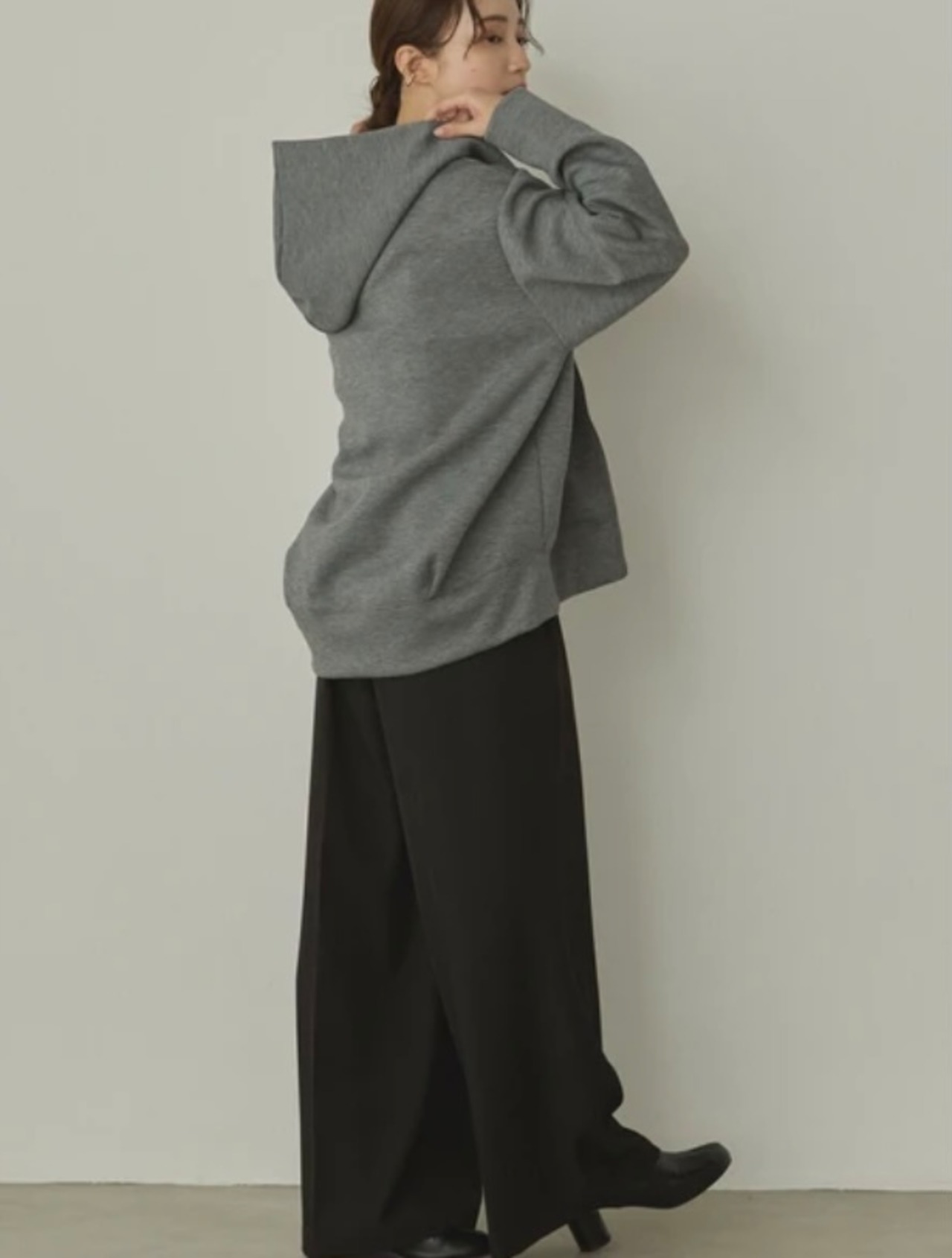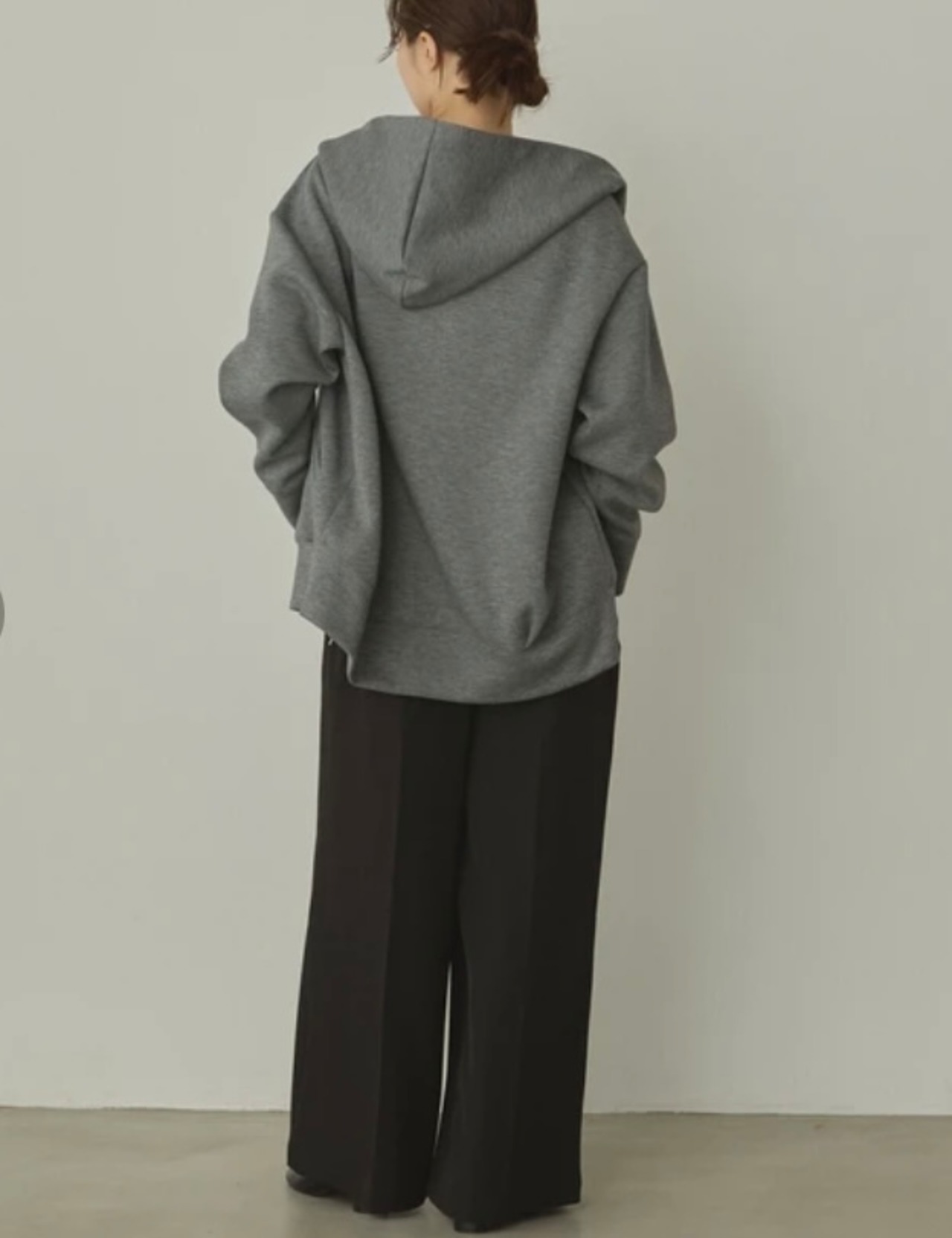 ほどよくハリ感と落ち感のある素材で、きれいなコクーンシルエットに。