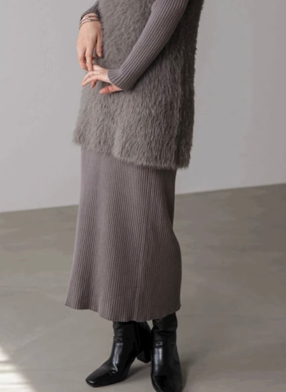 リブ編みで身体のラインを拾い過ぎないのも嬉しいポイント。