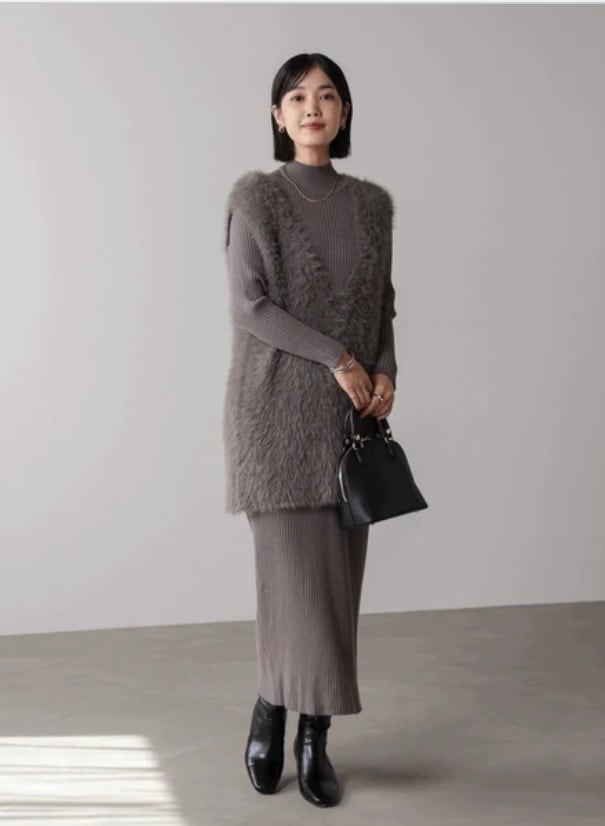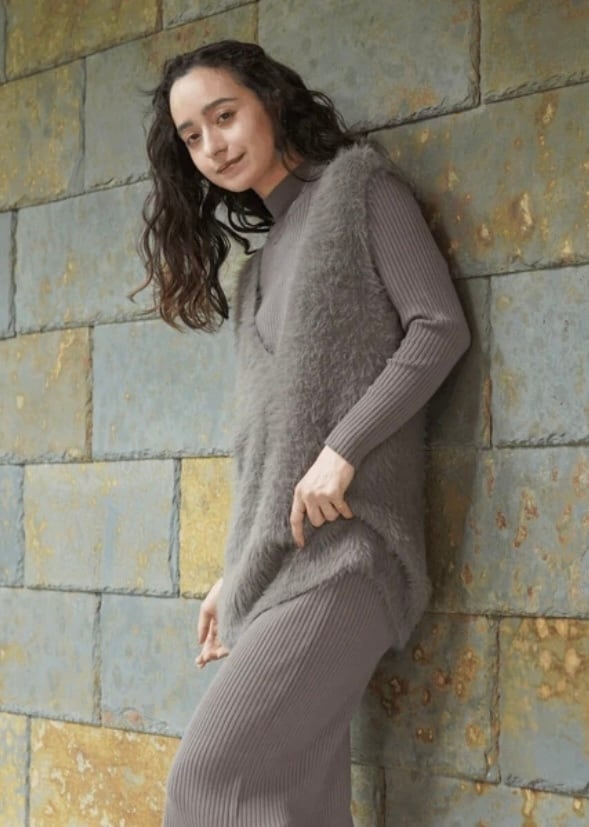 ボリューム感のあるシャギーベストは丈が長めで体系カバーもばっちり。