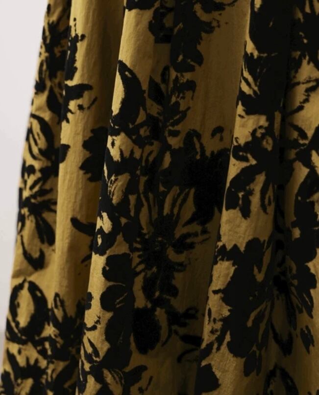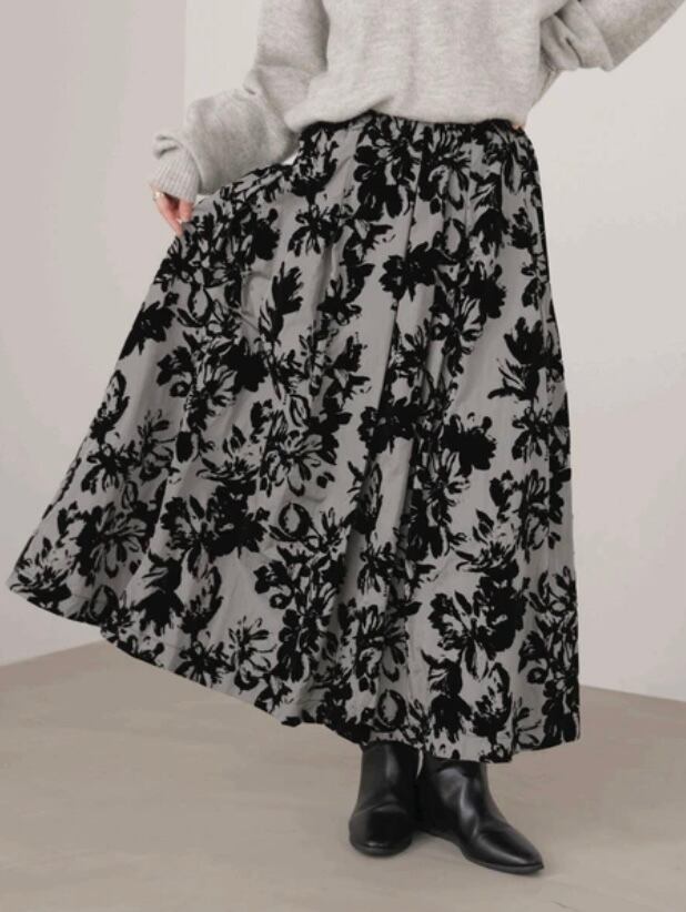 上品な質感が動きに合わせて揺れ、フラワー柄のフロッキープリントが美しさをより引き立てます。