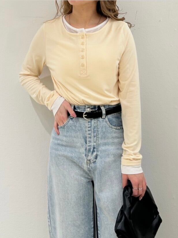 肌あたりが良く快適な着心地のヘンリーネックカットソー