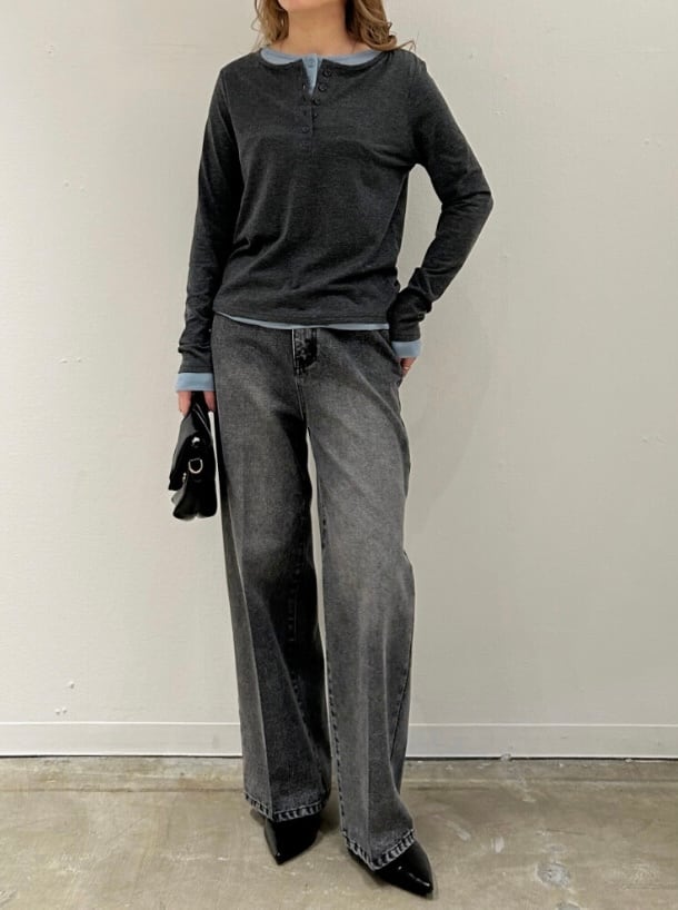 杢天竺配色ヘンリーネックプルオーバー