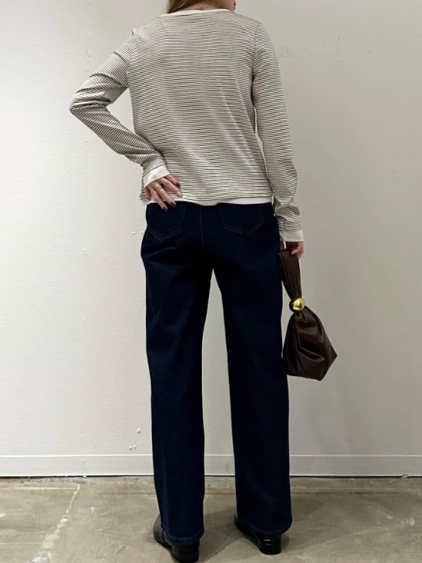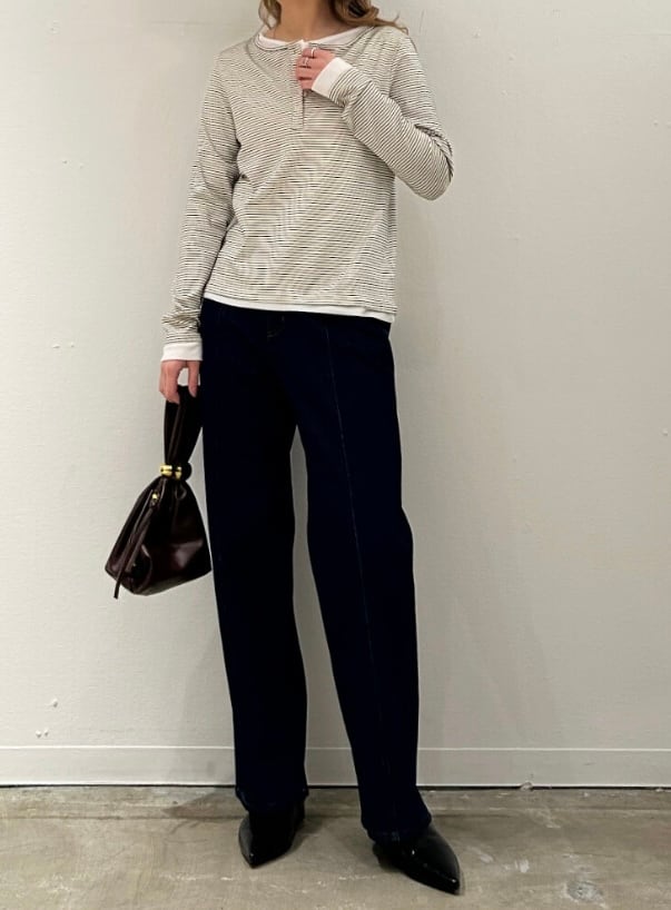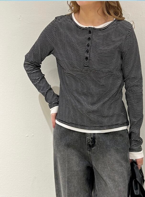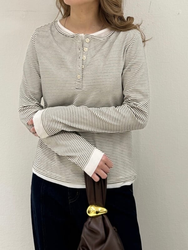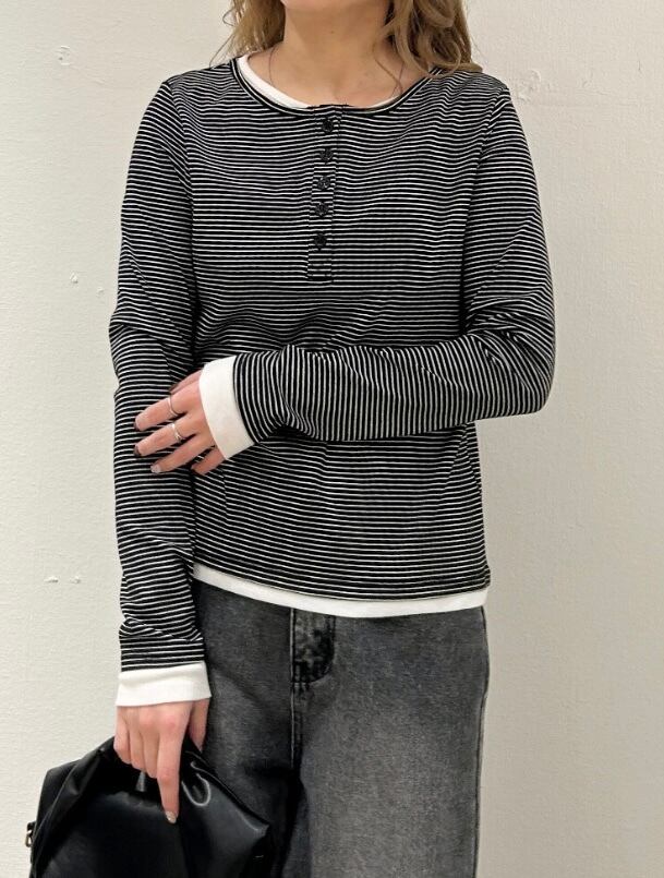ボーダーレイヤードヘンリーネックプルオーバー